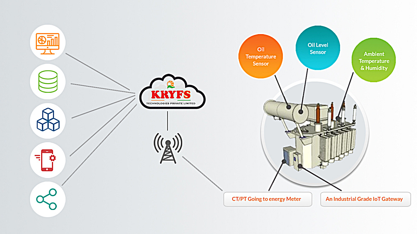 KRYFS Technologies offers an advanced IoT-based distribution transformer monitoring system (DTMS) for real-time tracking of electrical and physical parameters.